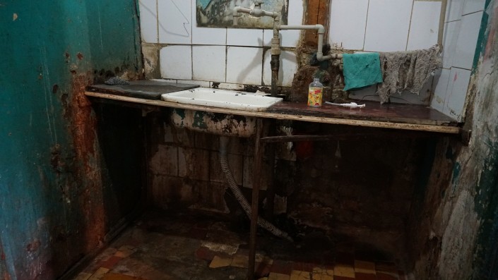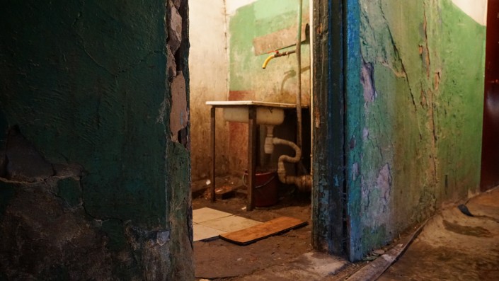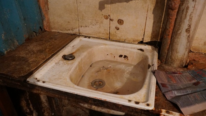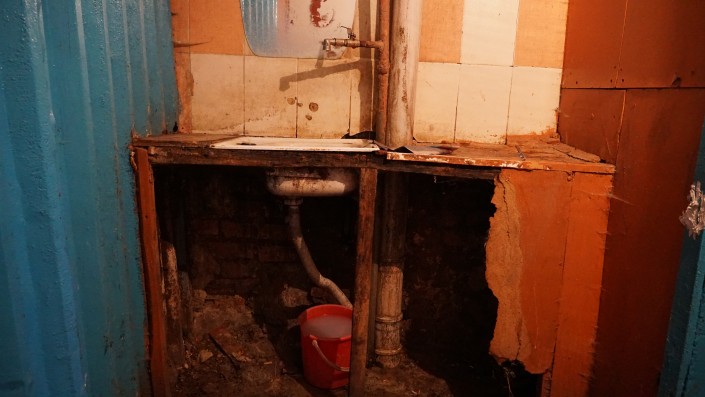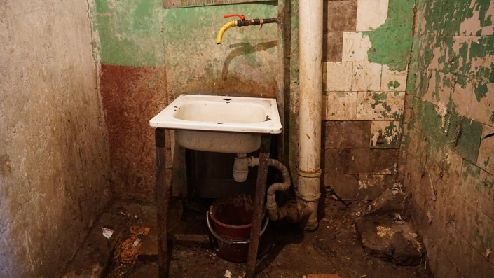 На каждом этаже этого общежития порядка 30 комнат. Все их жители пользуются одной раковиной.