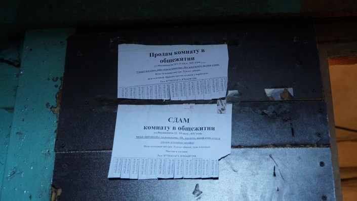 В подъезде можно заметить объявления о сдаче и продаже комнат.