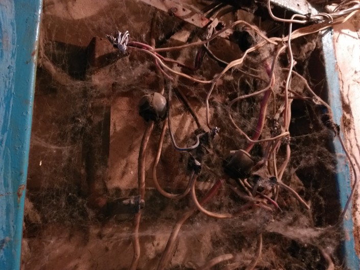 Некоторые провода покрыты паутиной.