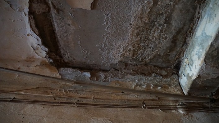 "Вот видите, какие у нас стены. Я, например, у себя в комнате пробовала делать ремонт, но ведь сюда забить ничего невозможно, я как эту стену затронула, мама миа! Так вот это все у меня и посыпалось, это было что-то, оно уже все здесь прогнило, там ни цемента, ничего нет, сыпется песком, я убираю, а оно все сыпется", - рассказывает женщина, которая живет в этом общежитии уже 20 лет.
