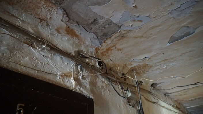 "Вон, в туалет наш зайдите. Если на улице дождь, то и в туалете - тоже дождь, с потолка прямо бежит. Это ладно у нас хоть чистая вода бежит, а у других прямо канализация бежит на пол", - рассказала еще одна жительница.
