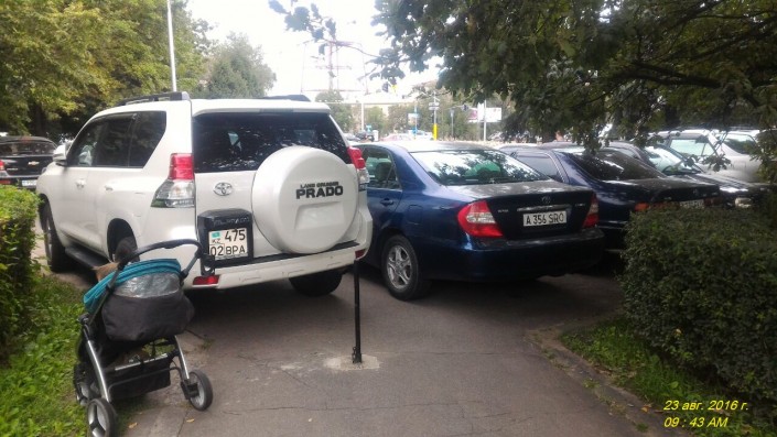 Следующее фото нам прислали из Алматы. "Возмущению нет предела! Проспект Достык - улица Кажымукана. Машина припаркована прямо на тротуаре, бедной женщине с коляской пришлось еле как обходить сбоку. Патрульная машина просто проехала", - написал в редакцию читатель. Снимок был сделан 5 сентября.
