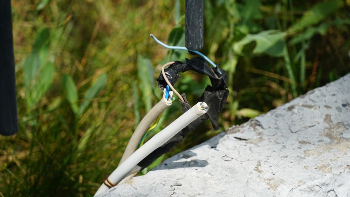 Местами торчат провода.