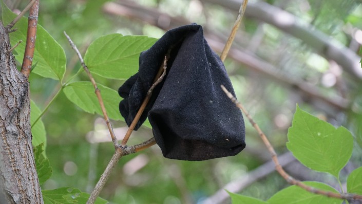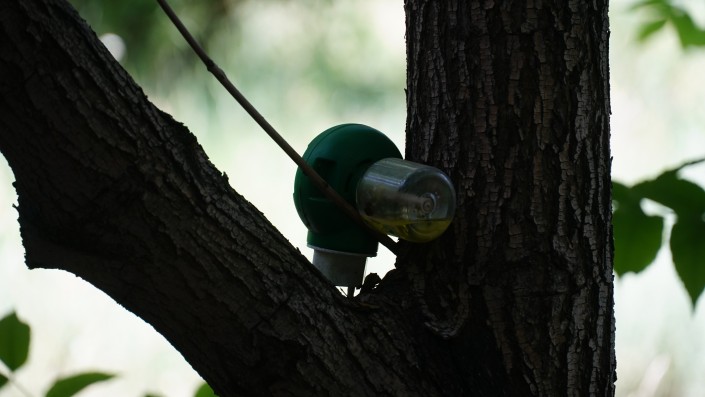 На дереве можно заметить что-то похожее на средство от комаров.