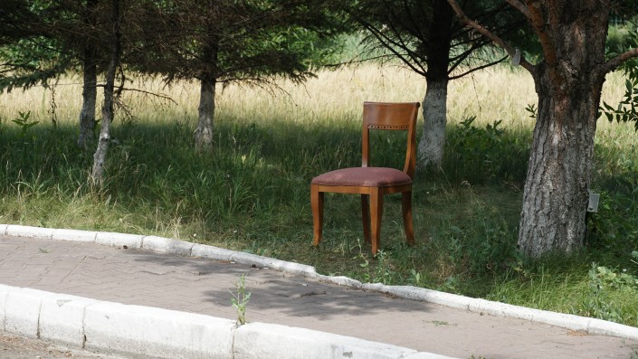 Тем не менее охранник здесь есть. Он сидит напротив, на стуле в тени.