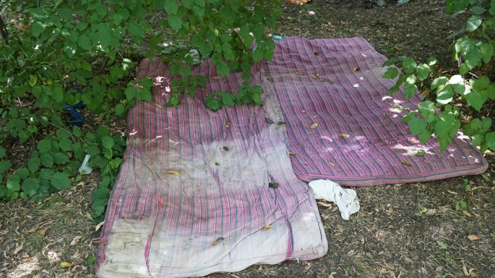 И по всей видимости, это ни что иное, как импровизированная постель. На наших глазах к ней подошел мужчина и лег на нее.