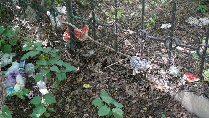 В кустах можно было также обнаружить много мусора и какие-то непонятные предметы.