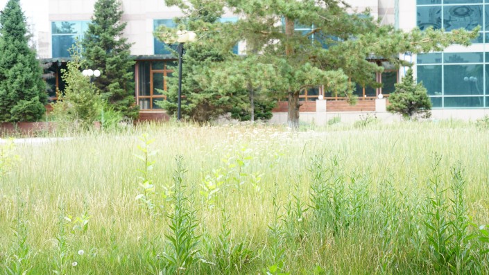Если часть отеля, выходящая на проспект Абая, выглядит вполне чистой, то задний двор гостиницы кажется немного заброшенным.