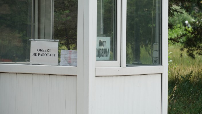 Охранник отказался нас пускать на территорию, отметив лишь, что внутри никого нет и все люди покинули гостиницу еще полтора месяца назад.