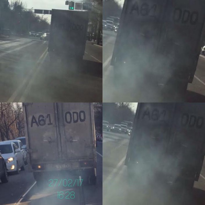 И в завершение - фото от читателя из Алматы. Очевидец жалуется на сильно дымящий грузовой автомобиль. Фото было сделано на пересечении улиц Жарокова и Тимирязева.