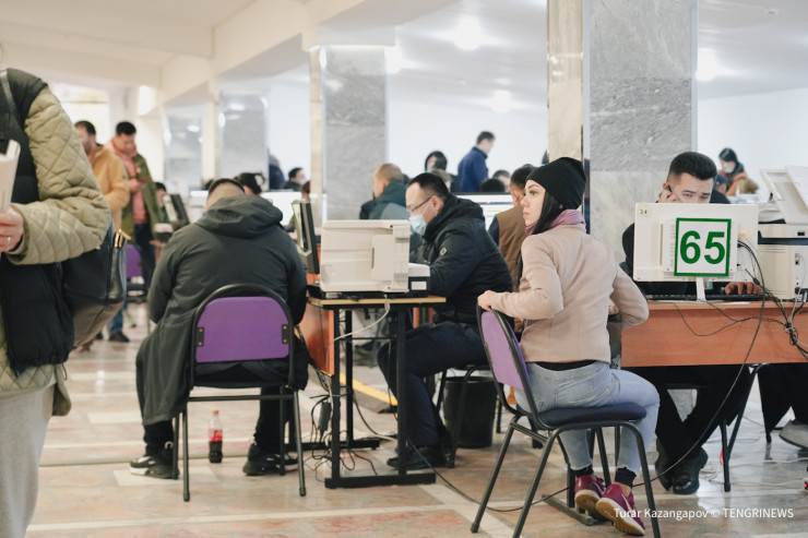 "После четырех уже новых людей не будем принимать сегодня. Сейчас ожидают в очереди полторы тысячи человек. Их всем мы точно не сможем принять до шести (официальное время работы ЦОНов в столице с 09:00 до 18:00. - Прим.), скорее всего, это затянется до семи-восьми вечера. Закрыли очередь сейчас и будем работать до последнего ожидающего", - сказал Мади Саданов.