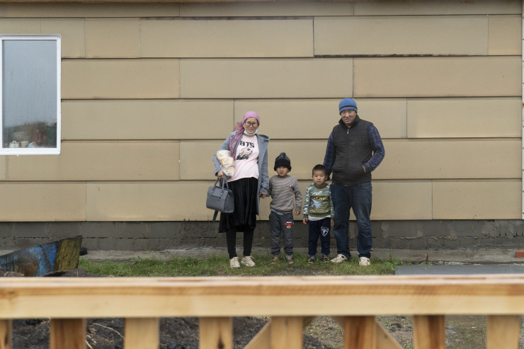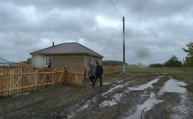 Вот в этом новом доме, в самом конце улицы живет семья Алимбековых из Туркестанской области. Живут уже два месяца. Впервые они приехали сюда в прошлом году, посмотрели - вроде все устраивает, решили переезжать.