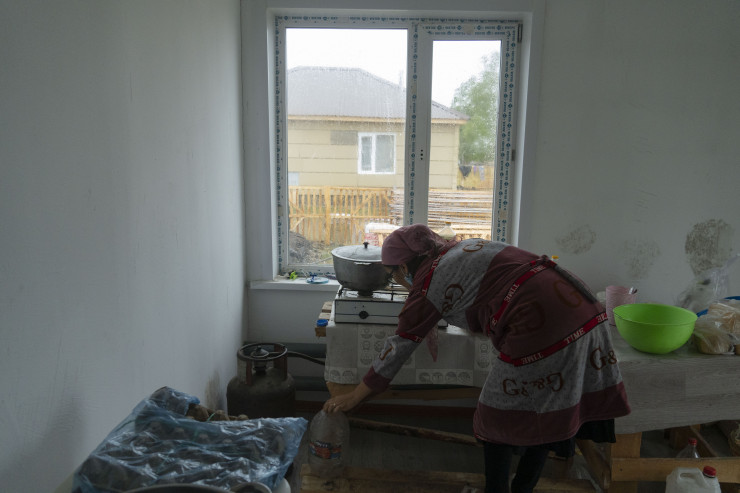 "Мой сын и брат приехали сюда два месяца назад. Им обещали, что все доделают в течение двух недель, сказали: "Не беспокойтесь, переселяйтесь". Мы верили, два месяца прошло, нет света, нет воды, дорога тоже плохая", - говорит аксакал Балгабай Алимбеков.