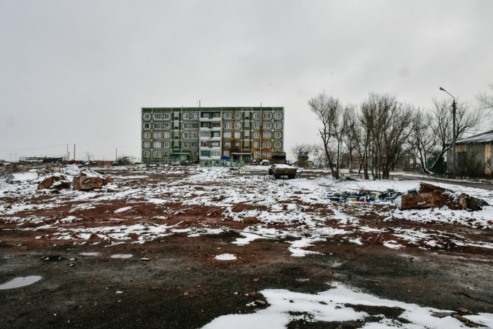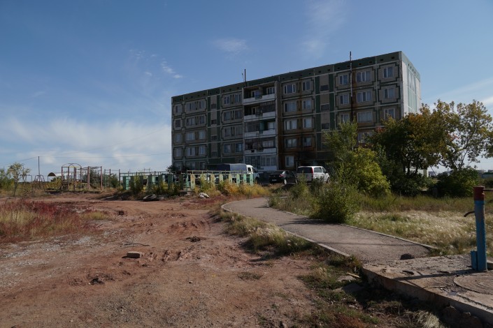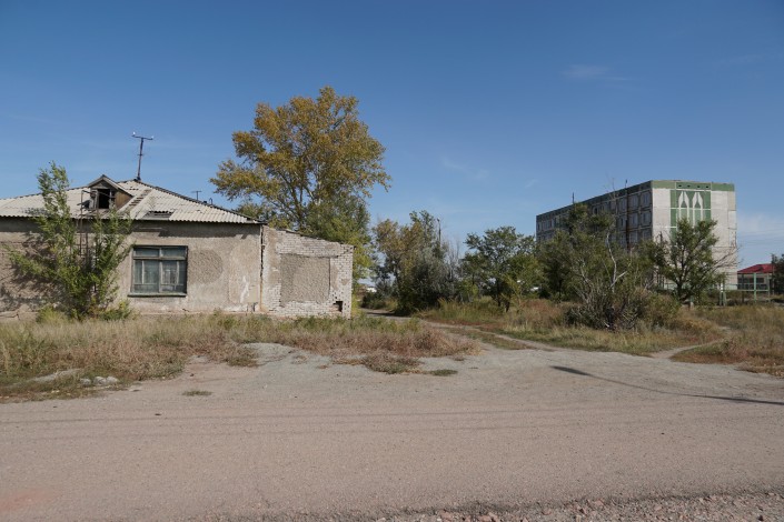 Прочитав, что дом № 6 (зеленую пятиэтажку) сносят, жильцы соседней одноэтажки под номером 7 поинтересовались у акима, а что же будет с их домом, который, по сути, остается один в степи.