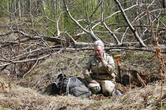 Гуляя по лесу, мы с фотографом заметили примечательную картину - поисковик раскуривает трубку. Не сфотографировать такой образ было просто невозможно. Хотели сделать это тайно, но нас быстро разоблачили. "Прежде чем фотографировать, нужно спрашивать разрешения, молодые люди", - сказал герой фотографии.