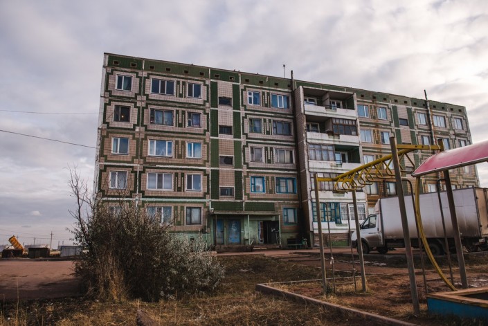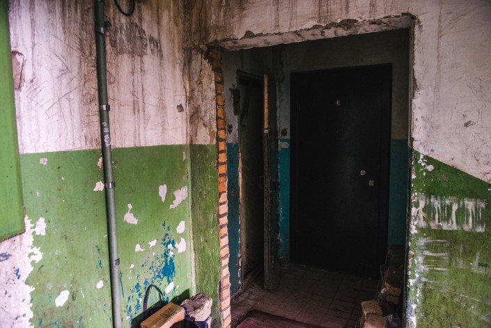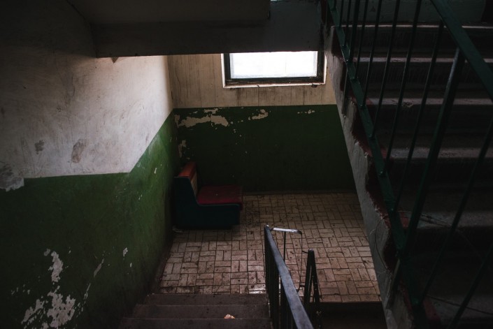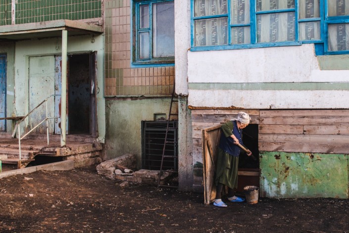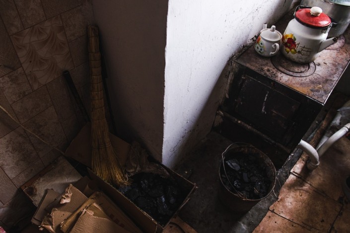 Вот так местные жители отапливают свои квартиры. Сначала набирают уголь, который хранится под балконом первого этажа.
