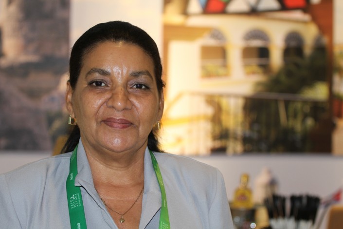 "У нас здесь кубинский ром, сигары...", - говорит на русском Марай Родригес.