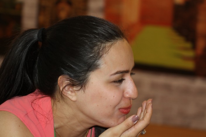 Культурный обмен происходит прямо на наших глазах. Улжалгас принесла своей подруге из Парагвая Летиции курт. Та сразу же пробует его на вкус.