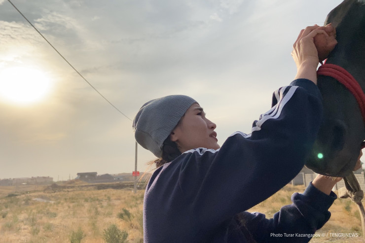 Зовут ее Балнур, фамилия Садык, ей 23 года. На первый взгляд это хрупкая девушка, но стоит ей сесть на лошадь, как она тут же превращается в грациозную и даже местами бесстрашную всадницу.