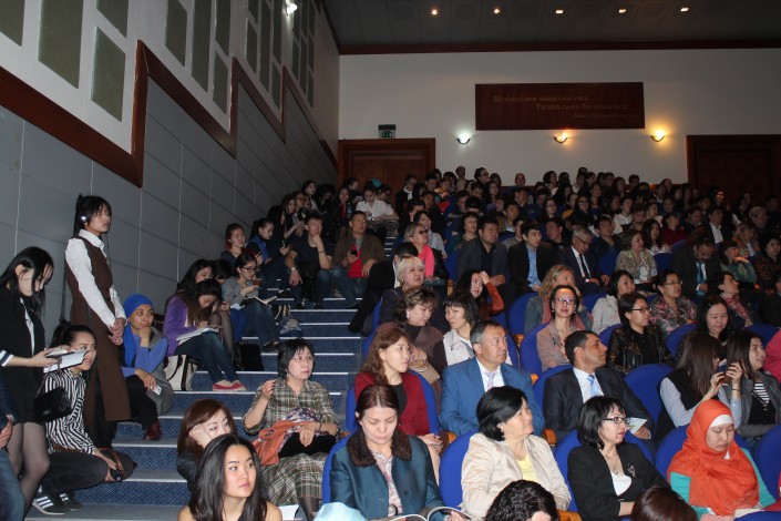 Студенты Евразийского национального университета на форуме "Человек мира", посвященном 80-летию Олжаса Сулейменова