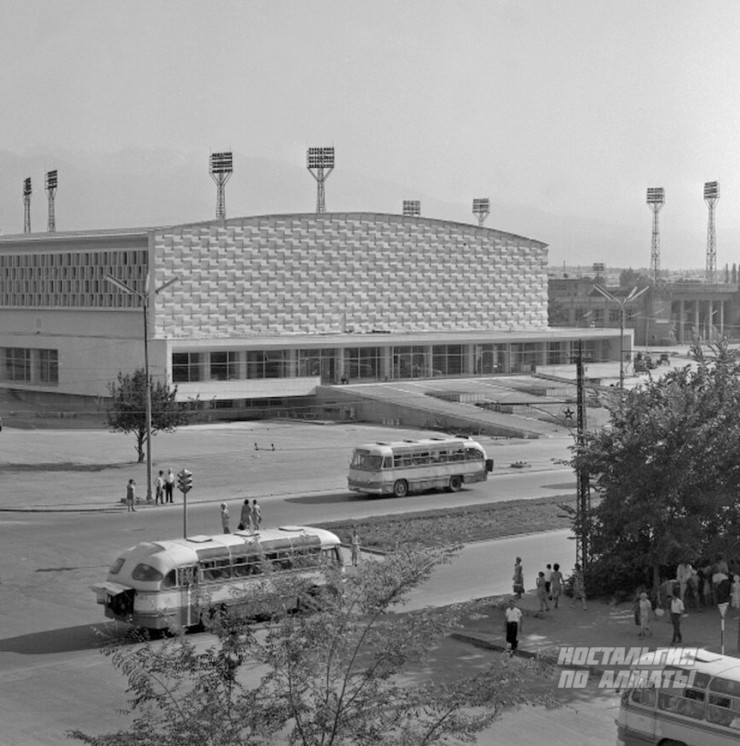 Дворец спорта на Абая. Сохранен до наших дней и даже прошел через реконструкцию. Фото 1968 года.