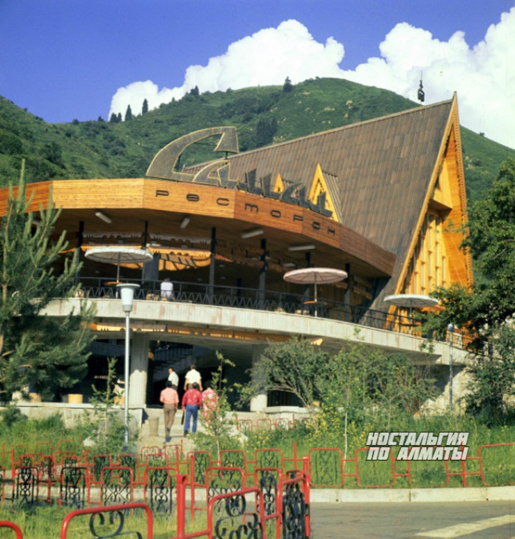 Ресторан "Самал", фото 1981 года. По информации из открытых источников, здание полностью сгорело в 90-е годы. Сейчас на этом месте отстроен другой ресторан.