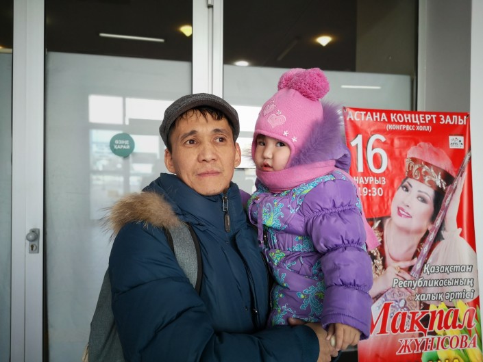 Его зовут Рысмахан, а его трехлетнюю дочь - Инжу. Мужчина говорит, что мать девочки ушла из семьи и он с двух месяцев воспитывает ребенка один. Бывают моменты, признается Рысмахан, когда ему не хочется жить. Отец-одиночка пришел на встречу с акимом Астаны, чтобы рассказать чиновнику о своих проблемах.