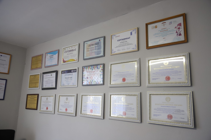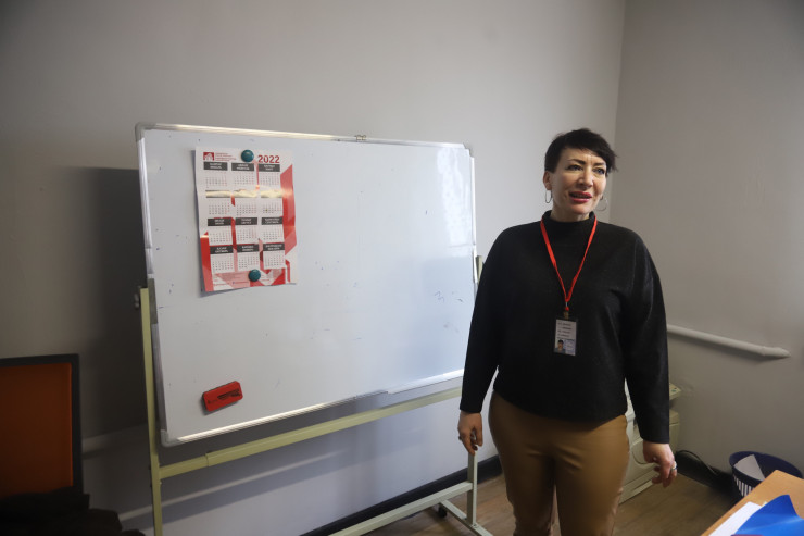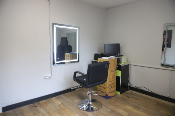 Дальше мы поднимаемся на второй этаж. В этом кабинете бесплатно обучают всех желающих парикмахерскому делу. Таким образом, у людей появляется профессия, заработок, мотивация.