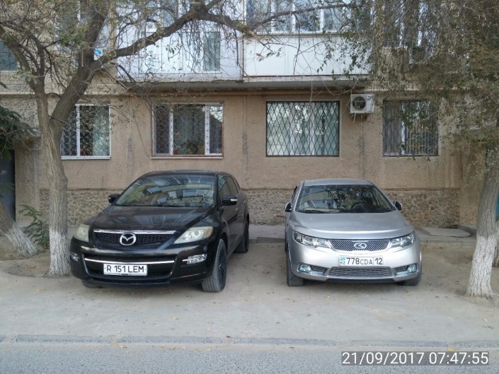 Парковка на газоне на проспекте Достык, выше улицы Хаджимукана.