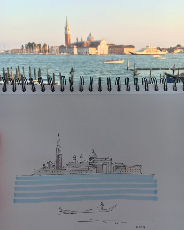 "Я могу нарисовать маркером, карандашом или провести акварелью. Все зависит от того, что у вас есть с собой. Для скетчинга вы можете использовать любые инструменты: карандаши, маркеры, акварель, уголь, цветные чернила, пастель, акварельные маркеры, различные линеры", - советует собеседник.