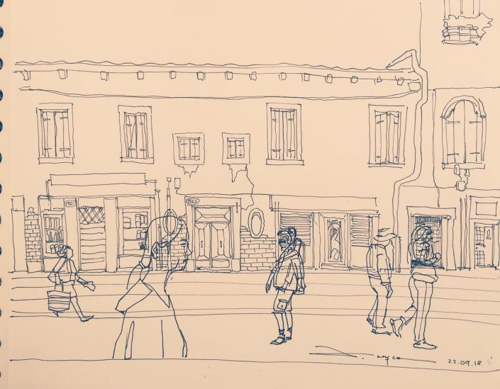 Адильжан отметил, что при скетчинге не нужно стесняться рисовать на оживленной улице, среди толпы.