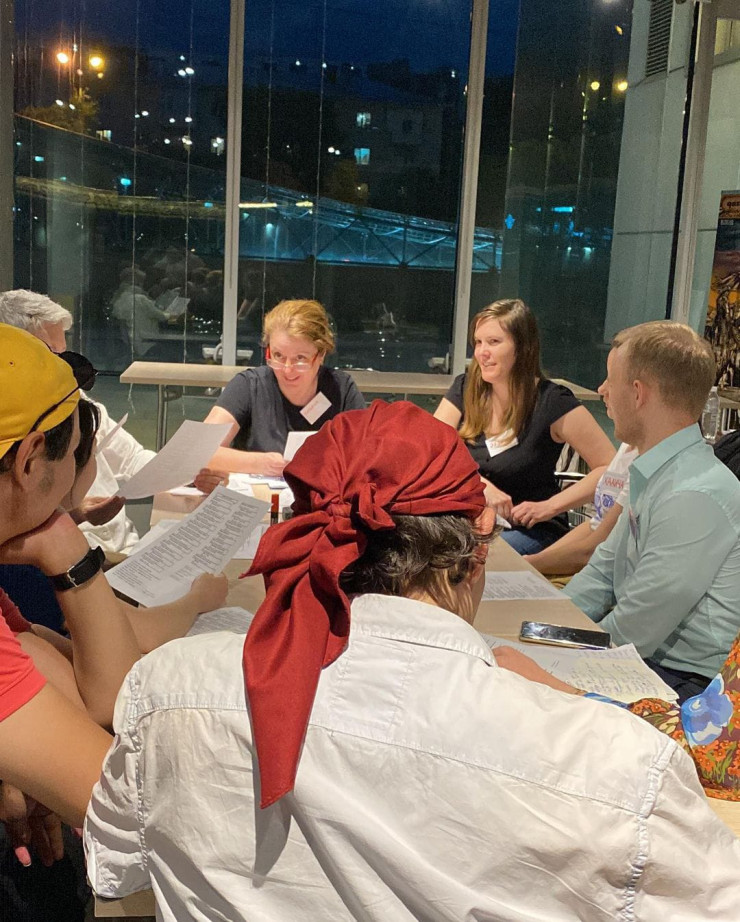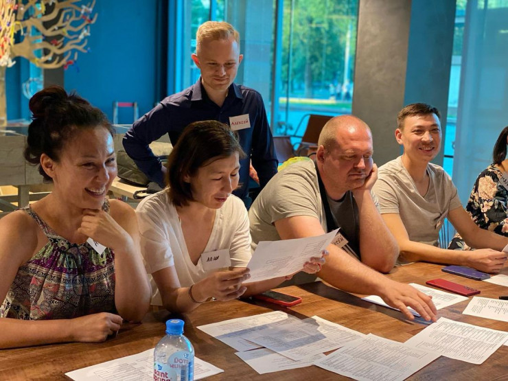 Время летит незаметно. Через полчаса мы уже становимся будто маленькой семьей, каждый поддерживает другого в желании высказаться на казахском языке. Условный водитель автобуса в брошюре оказывается немного с характером, приходится собеседнику импровизировать. Все как в жизни.