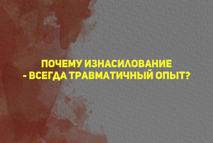 Добровольное согласие на секс - это позволение своему телу получать удовольствие от секса. Изнасилование - это использование моего тела, чтобы другой человек получил от него удовольствие. Если секс связан с принуждением, происходит против моей воли, то этот контакт в любом случае будет травматичным. Ровно так же, как и все в нашей жизни, что происходит против нашей воли: помыть полы или выучить стихотворение.