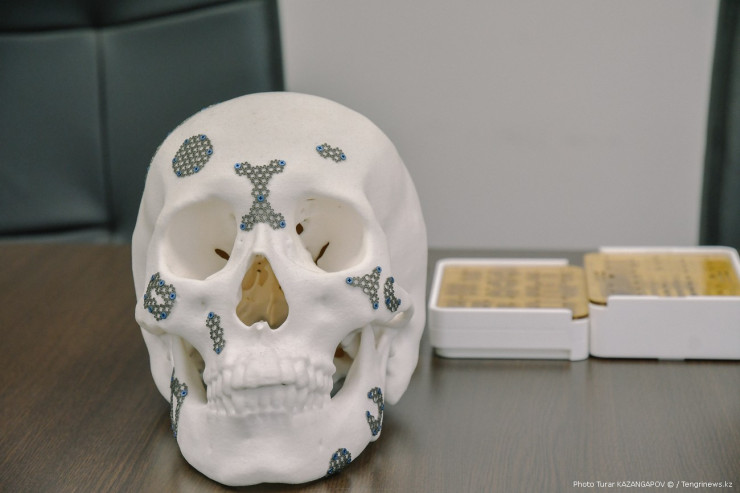 Шигеки показывает нам последнюю японскую разработку - специальные материалы, которые похожи на настоящие кости, и титановые заклепки, которые помогают восстанавливать поврежденные фрагменты черепа. Эта методика очень помогает людям, получившим увечья в автомобильных катастрофах.