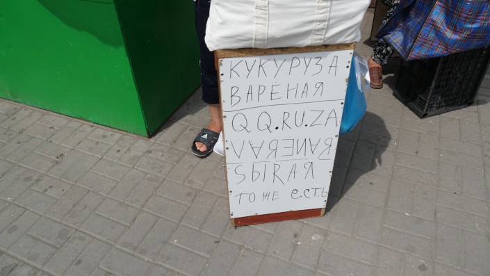 "Местные меня называют кукурузник", - говорит, улыбаясь, мужчина за небольшой деревянной стойкой, на которую водружен мешок с горячей кукурузой. На стойке бросаются в глаза надписи: "Кукуруза вареная", "QQ.RU.ZA", "SЫRAЯ тоже есть" ...