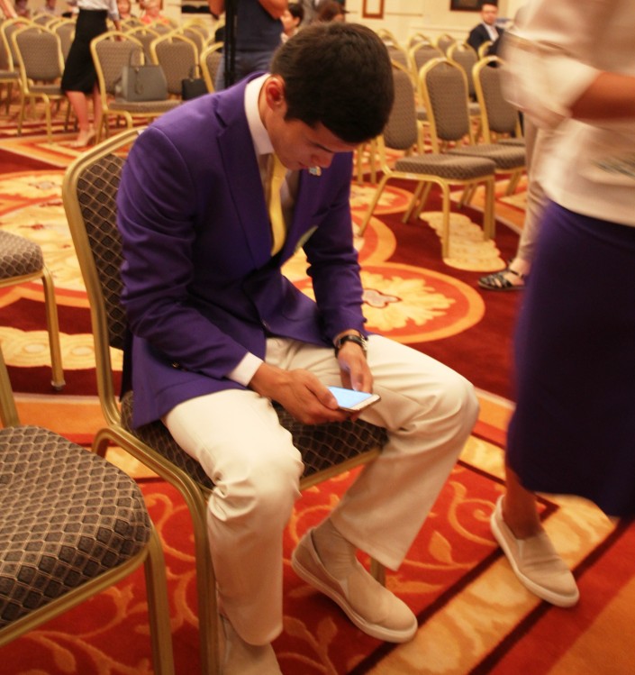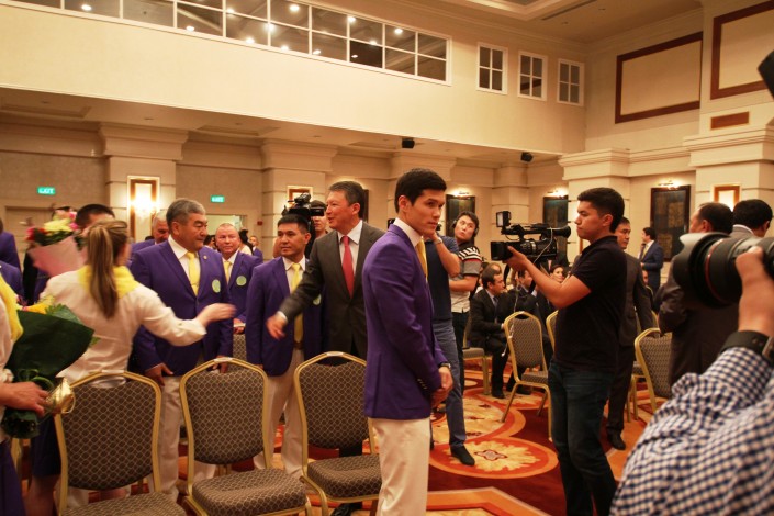 Сегодняшняя встреча была хоть и с участием главы НОК и министра культуры и спорта, но все же это было не такое масштабное мероприятие, как ожидает спортсменов завтра. Между тем герои Олимпиады старались выглядеть безупречно. Когда уже все приглашенные были на месте, и Тимур Кулибаев ждал только министра, чтобы начать, появился серебряный призер Олимпиады Елдос Сметов и девушка, по всей видимости, отвечающая за организацию встречи досадно произнесла: "Это же не та форма".