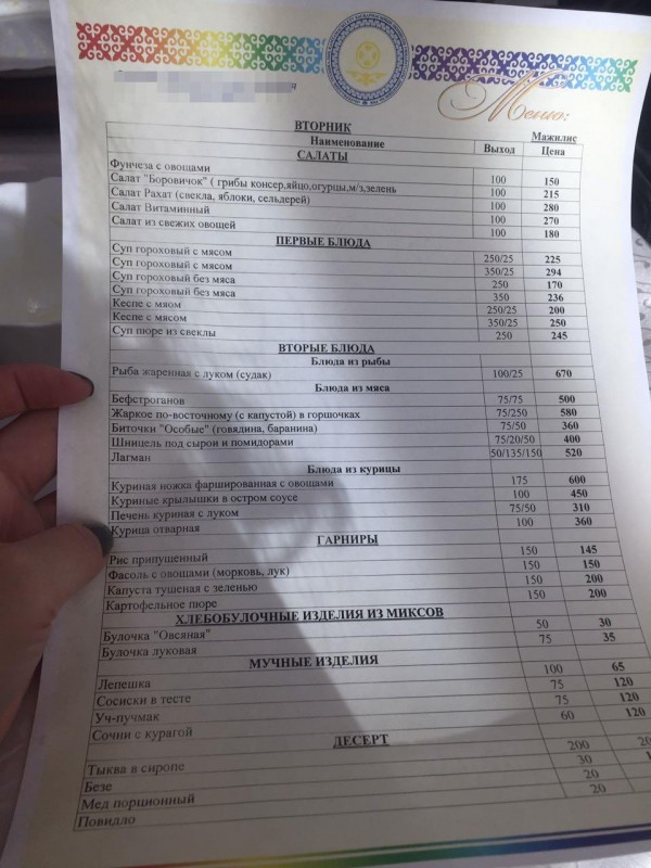 Обед в столовой столичного акимата обойдется в среднем в 800 тенге.