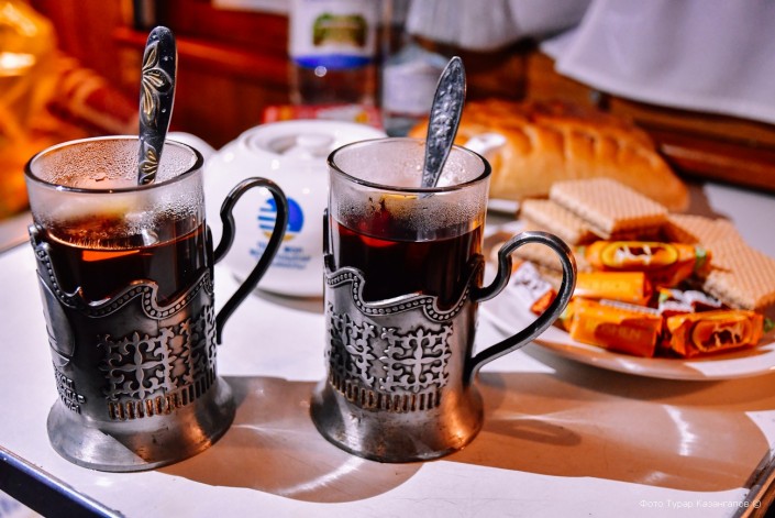 Кто-то, прочитав этот репортаж, справедливо заметит, что, помимо новых "Тальго", по железным дорогам Казахстана курсируют и старые, обычные поезда. А как получать удовольствие от поездки на них? Да, наверное, точно так же: общаться, смотреть в окно и пить чай. Во всяком случае, мы поступали именно так в обычном поезде, следовавшем из Алматы до станции Алтынколь.