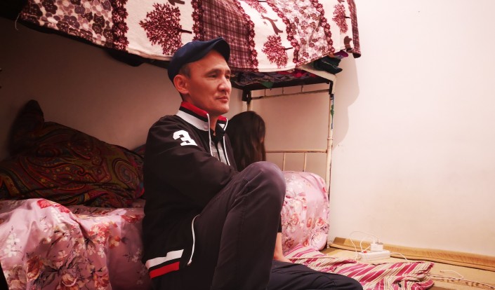 Исатай в подсобке на мойке, 2017 год