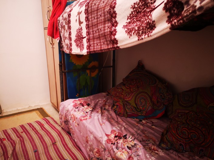 Исатай с сыном и дочерью в комнате на автомойке, 2019 год