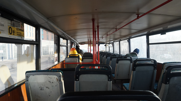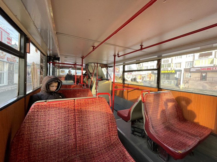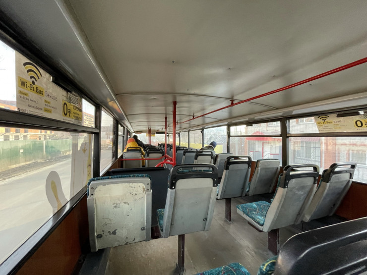 По словам водителя Аркадия, двухэтажный автобус заполняется пассажирами в часы пик. В остальное же время в салоне можно увидеть небольшое количество людей.