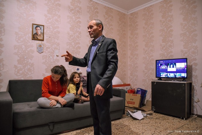 Эта просторная комната со всеми удобствами находится в доме по улице Ташенова. В хорошем расположении духа нас встречает Сергей Коваленко. Дома вся семья - две дочери, сын. На кухне хлопочет бывшая супруга Сергея Наталья. Для нее тоже все произошедшее было большим сюрпризом. Это жилье во временное пользование семье Коваленко предоставил один из неравнодушных граждан.