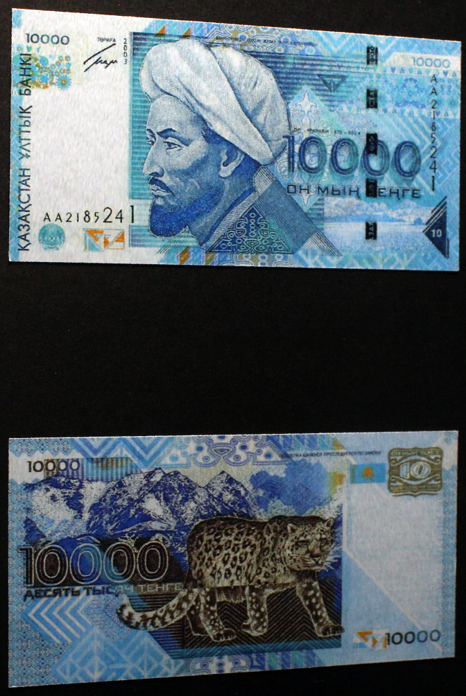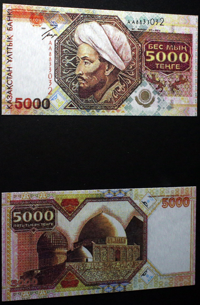 Со временем возникала потребность в более высоких номиналах тенге, в том числе из-за инфляции. Первые банкноты высоких номиналов сформировали серию "Аль-Фараби", основным изображением на которых был портрет великого ученого и просветителя Востока. Банкноты этой серии выпускались в 1994 году номиналом 200, 500 и 1000 тенге, в 1996 году появилась банкнота в 2000 тенге, в 2000 году - в 5000 тенге и в 2003 году - в 10 000 тенге. Периодически в банкноты этой серии вносились изменения для того, чтобы усилить и усовершенствовать защитные свойства, не меняя основное изображение.