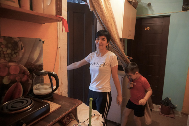 Разумеется, не все люди в этом общежитии пьют и оставляют мусор в подъезде. Должно быть, здесь хватает законопослушных семей. Об одной такой порядочной семье мы рассказывали в предыдущем материале. Помните, Салуе с сыном Тимуром, которые борются с аутизмом. Они как раз живут в одной из комнат этого общежития.