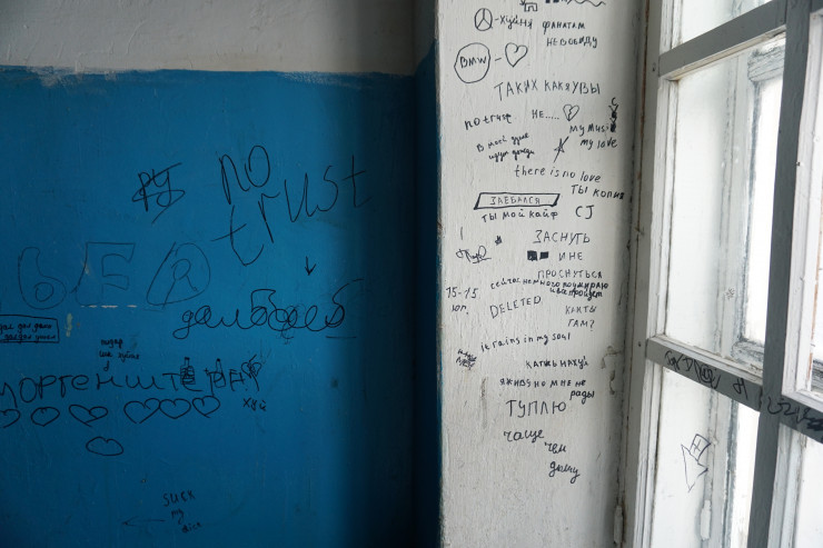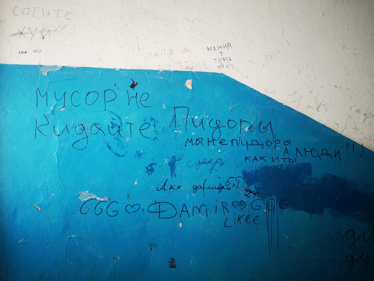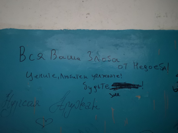 "Покрасили, а потом через неделю опять вон там написали. Конечно, обидно, как будто специально. Говоришь-говоришь, но никто не хочет слушать", - рассказывает техничка Ляззат, указывая на чье-то признание в любви.