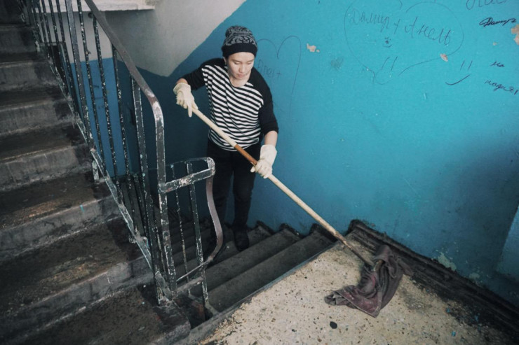 "Наверное, не хочет никто здесь нормально жить", - рассуждает Ляззат, продолжая убирать подъезд. Впереди у нее как минимум еще час работы.