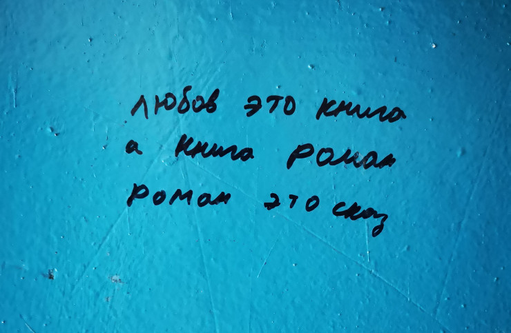 Рядом с огромным признанием "Я тебя люблю" есть еще одна надпись маленькими буквами - "А я тебя нет".