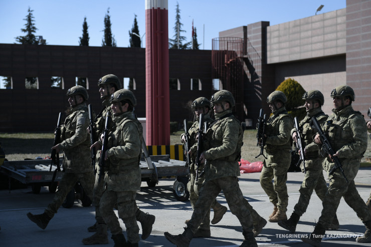 На территории аэропорта много военных. Возможно, они охраняют гуманитарную помощь, которая прибывает в Турцию.
