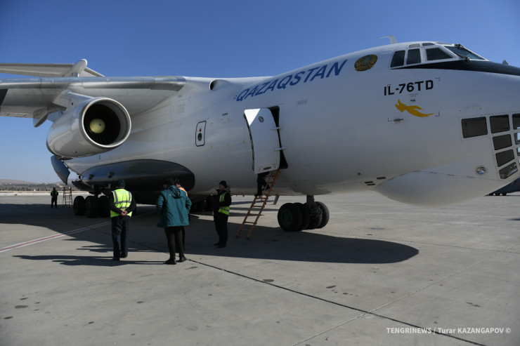 После того, как казахстанский Ил-76 разгрузили, началась подготовка судна к возвращению. Самолет полетит домой с пассажирами, среди которых есть студенты из Казахстана.
