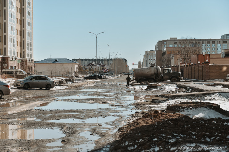 Весеннее потепление в столице вновь обнажило проблему разбитых дорог. Причем если в одних местах асфальт еще не успели проложить, то в других он "растаял" вместе со снегом. Корреспонденты Tengrinews.kz прогулялись по улицам Астаны.